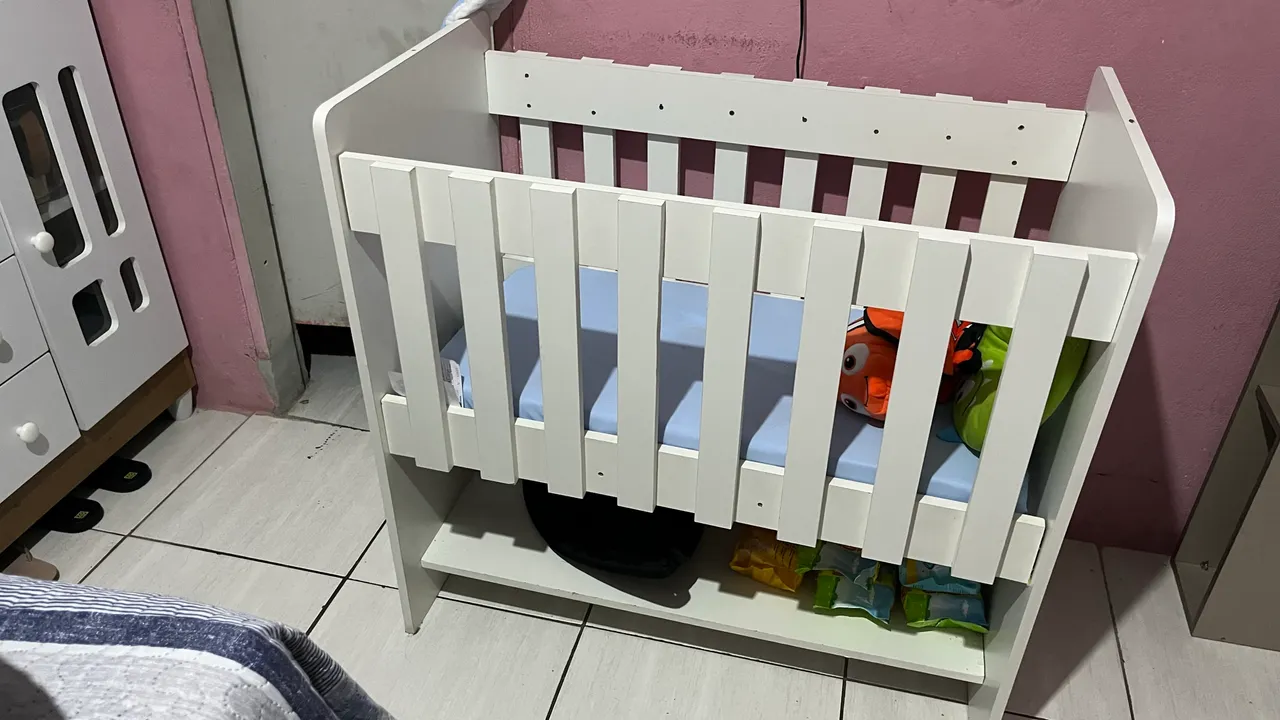 Lindo mini berço branco, ideal para o quarto do seu bebê. Design moderno e seguro para o descanso do seu pequeno. Proporcione noites tranquilas e um ambiente acolhedor para o seu filho.