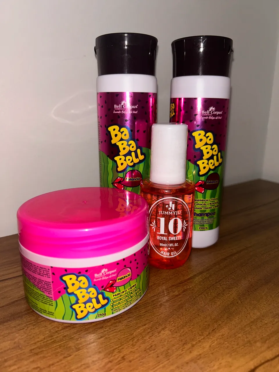 Kit completo para seus cabelos! Shampoo + máscara capilar Ba Ba Bell Melancia + brinde. Hidratação, nutrição e maciez garantidas. Experimente a explosão de melancia nos seus fios!