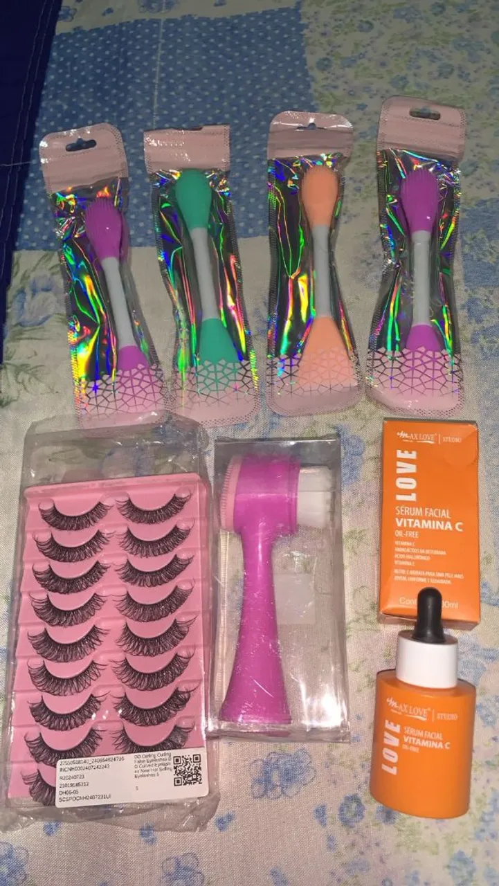 Kit de maquiagem completo para realçar sua beleza! Inclui cílios postiços, sérum facial de vitamina C, aplicadores e escova de limpeza facial. Contato 929... ver número