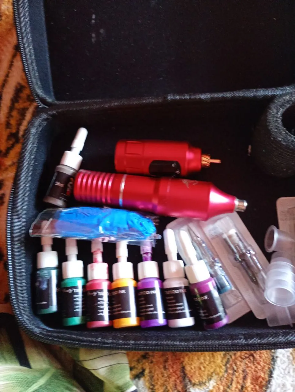Kit completo para tatuagem! Inclui máquina, tintas de diversas cores e acessórios essenciais para você começar a criar suas artes.