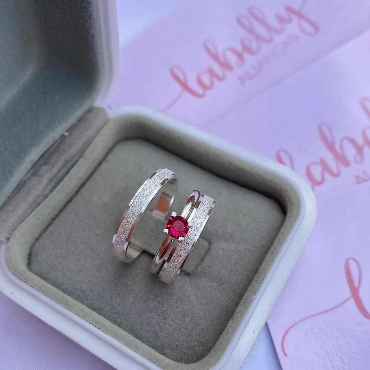 ? Par + anel solitário + caixinha personalizada - R$65