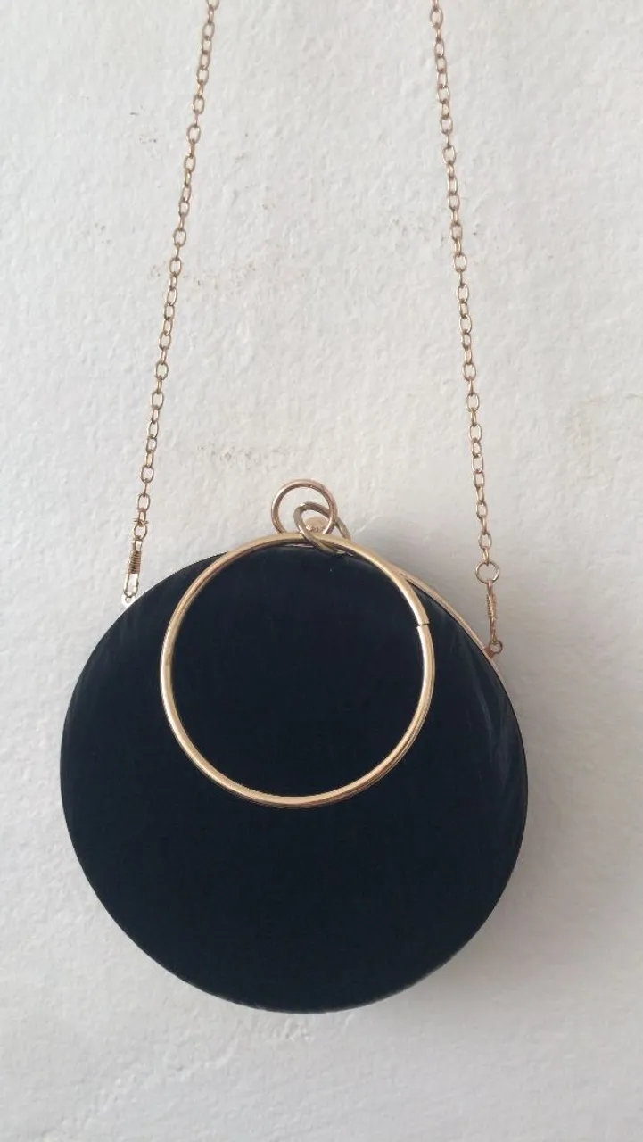Linda bolsa de mão redonda, perfeita para ocasiões especiais. Detalhes em dourado e design sofisticado que complementa qualquer look com elegância. Leve e charmosa, ideal para carregar seus itens essenciais.