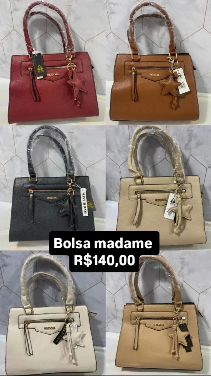 Linda bolsa Madame, perfeita para completar seu look com elegância e estilo. Design moderno e cores vibrantes que combinam com diversas ocasiões. Leve seus pertences com organização e charme!