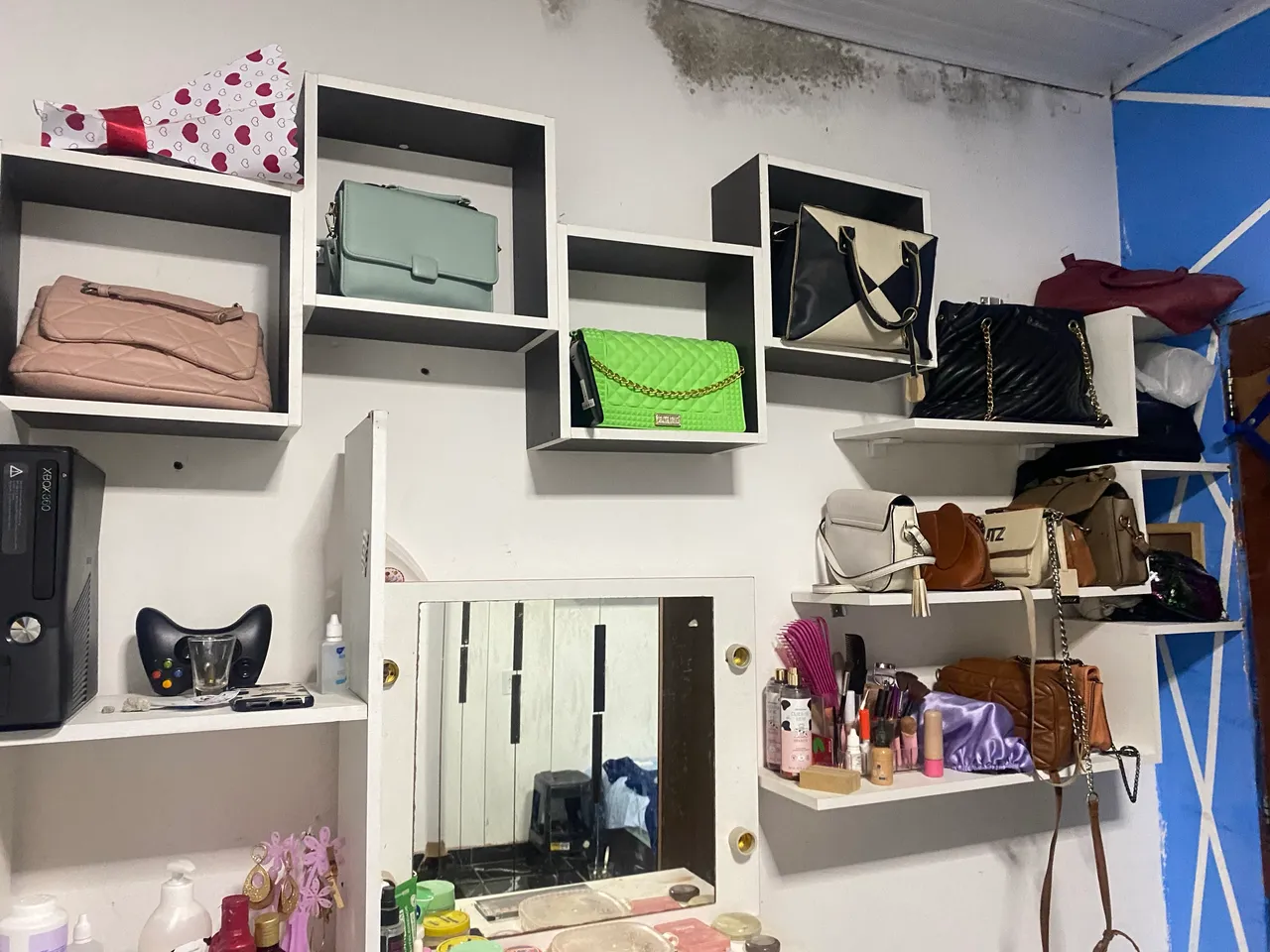 camarim e prateleiras! Ideal para organizar suas bolsas, maquiagens e acessórios, Tudo por 450,00 Com entrega