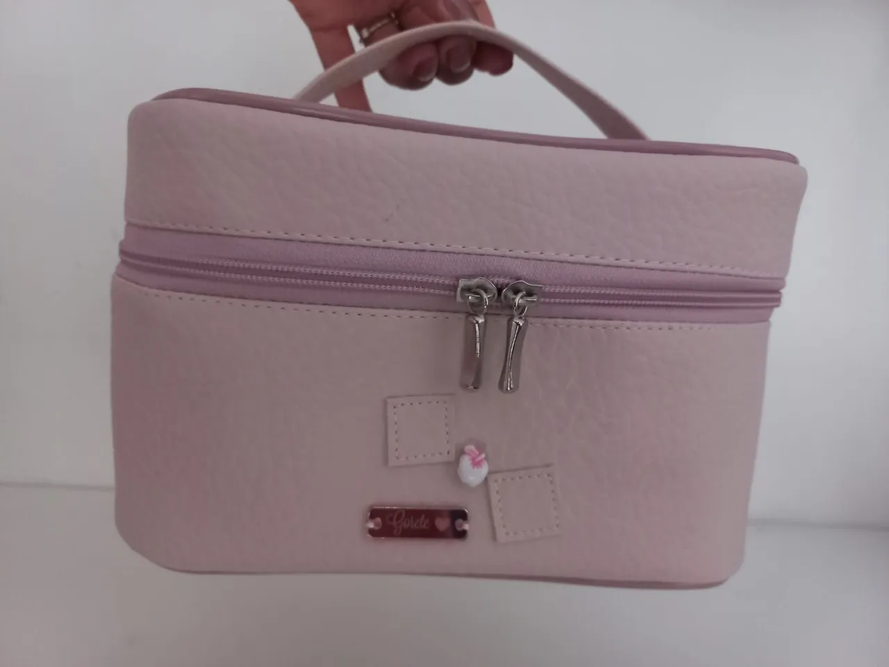 Linda nécessaire para organizar seus itens com praticidade e estilo! Com design elegante e cores suaves, perfeita para o dia a dia ou viagens. Em couro sintético, revestida internamente toda em tecido. Leve seus pertences com charme e organização!