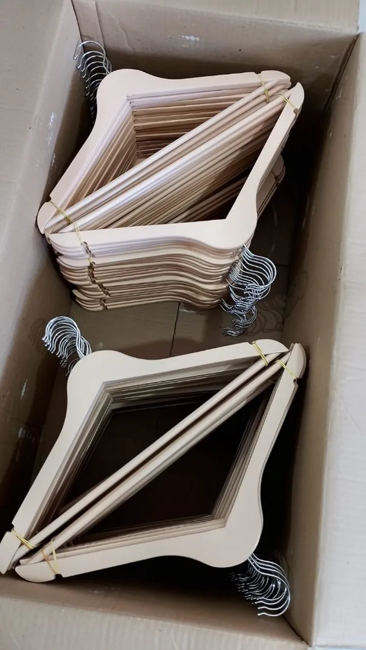 Caixa de cabides de Madeira Adulto com 100 unidades por $600,00 pagando no Pix ou no dinheiro. Para mais informações