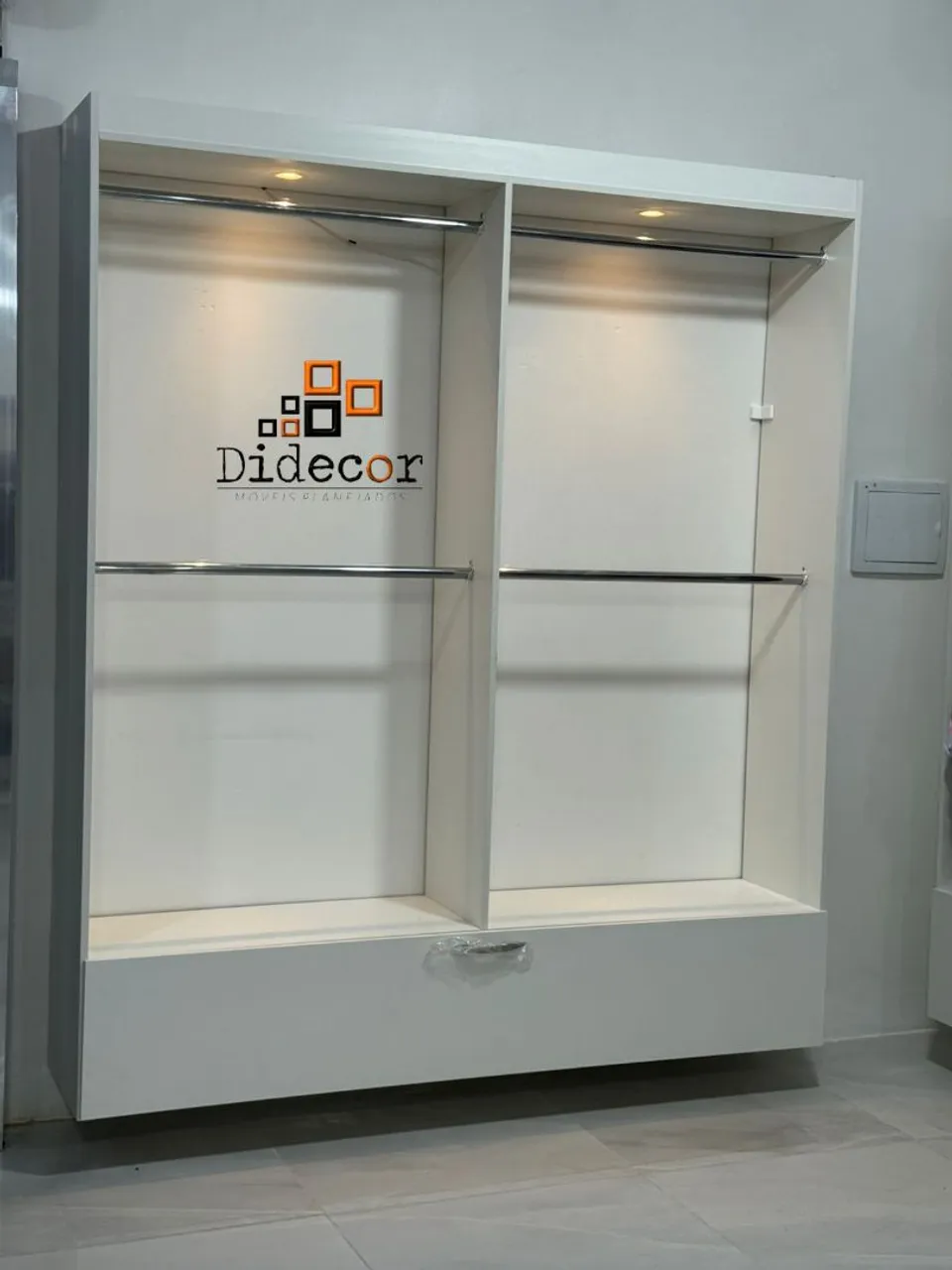 Expositor ideal para sua loja, com design moderno e funcional, perfeito para destacar seus produtos. Possui prateleiras e espaço para cabides, otimizando a organização e apresentação de seus itens.