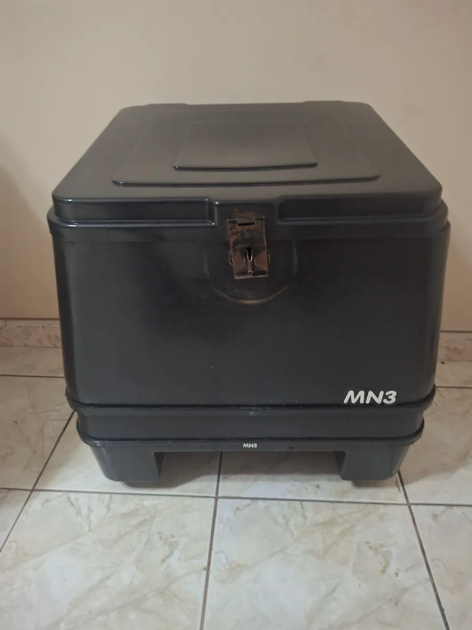 Bau para moto resistente e espaçoso, ideal para transportar seus pertences com segurança. Design prático e durável, perfeito para o dia a dia.