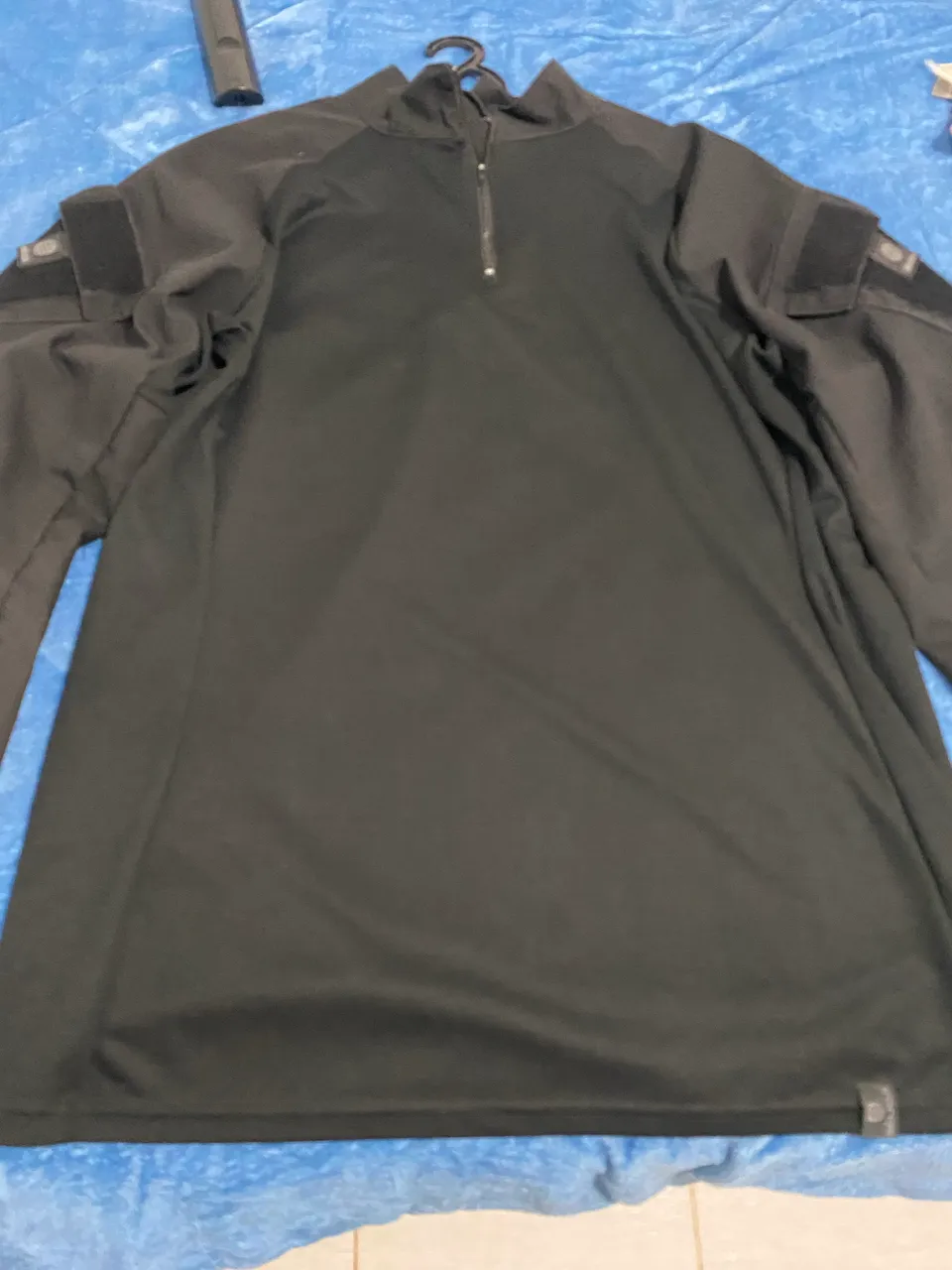 Camisa de uniforme de trabalho preta, ideal para diversas atividades. Confortável e resistente, perfeita para o seu dia a dia.