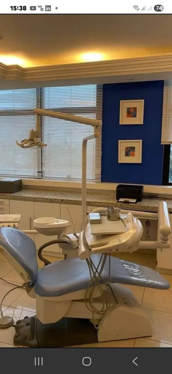 Sala com consultório odontológico, medindo 32 m2 com fino acabamento em porcelanato e granito, dispondo de Equipamento Odontologico completo, Cadeira Dabi Atlanti, Aparelho de Laser, Autoclave, Mobilia Completa, Ar Condicionado Split Novos, de baixo consumo e alto rendimento na climatização do ambiente.