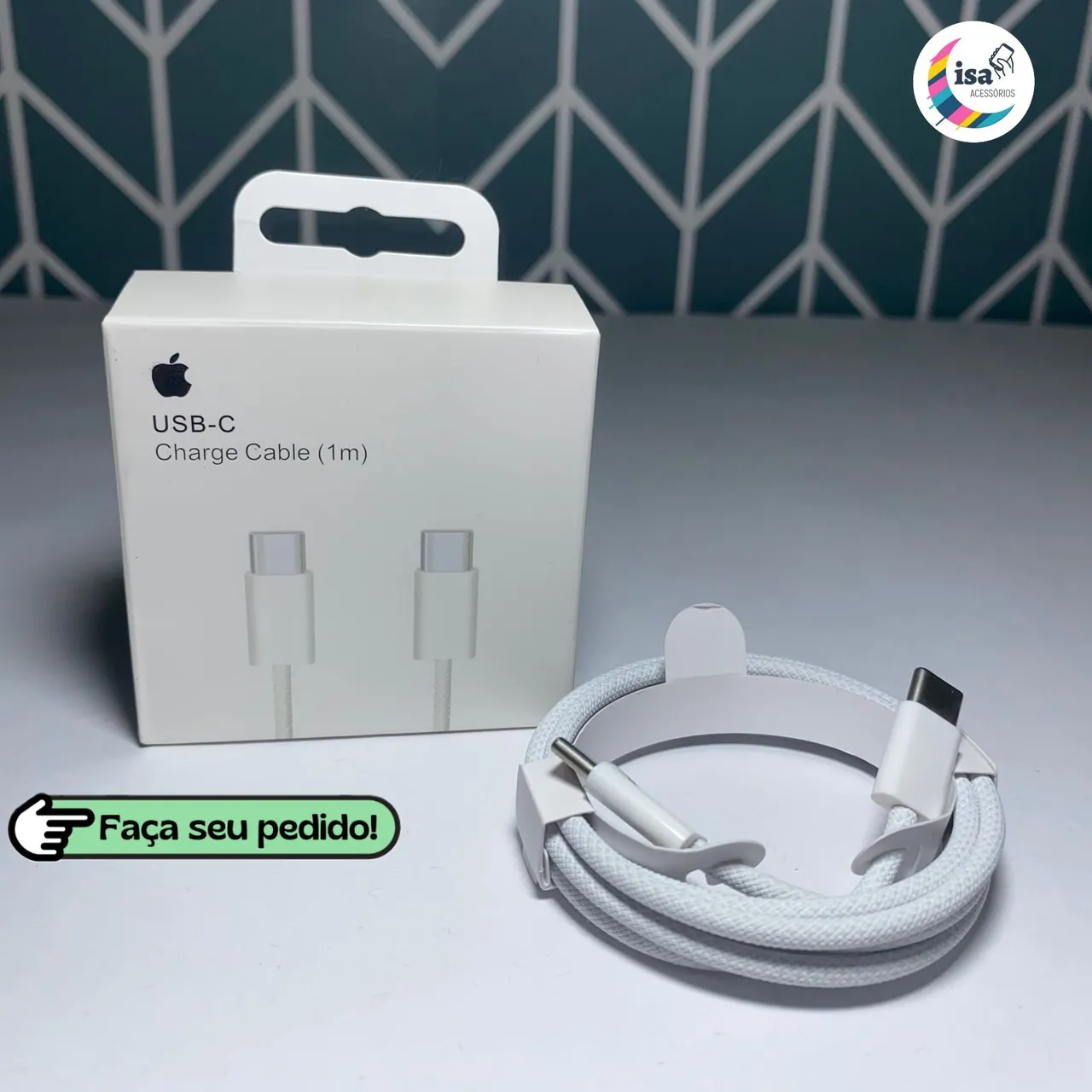 Este cabo Apple USB-C de 1 metro com design trançado e conectores Tipo-C em ambas as extremidades é ideal para recarregar, sincronizar e transferir dados entre dispositivos com entrada USB-C. Compatível com recarga rápida de até 60W e transferência de dados via USB 2.0.