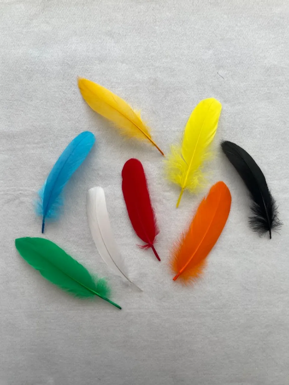 Lindas penas de ganso coloridas, ideais para artesanato, decoração e projetos criativos. Cores vibrantes e qualidade garantida!