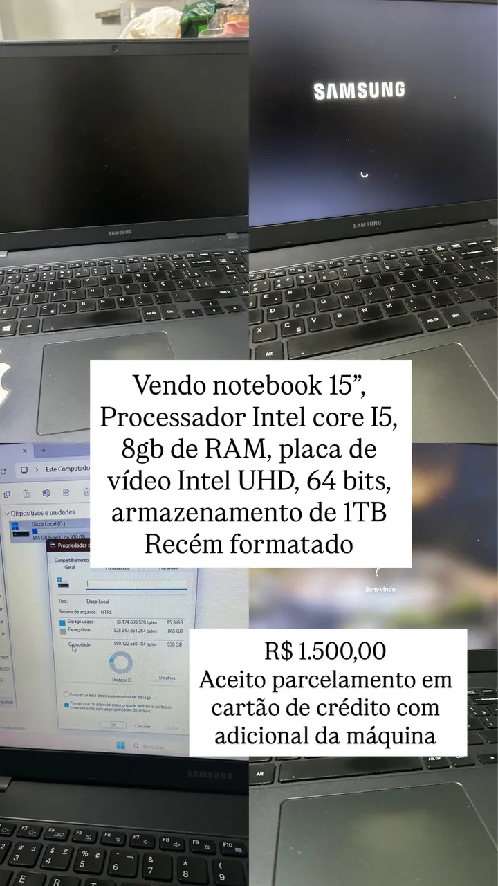 Notebook Samsung 15" com processador Intel Core i5, 8GB de RAM e armazenamento de 1TB. Perfeito para suas tarefas diárias com desempenho e agilidade. Leve e com design moderno.