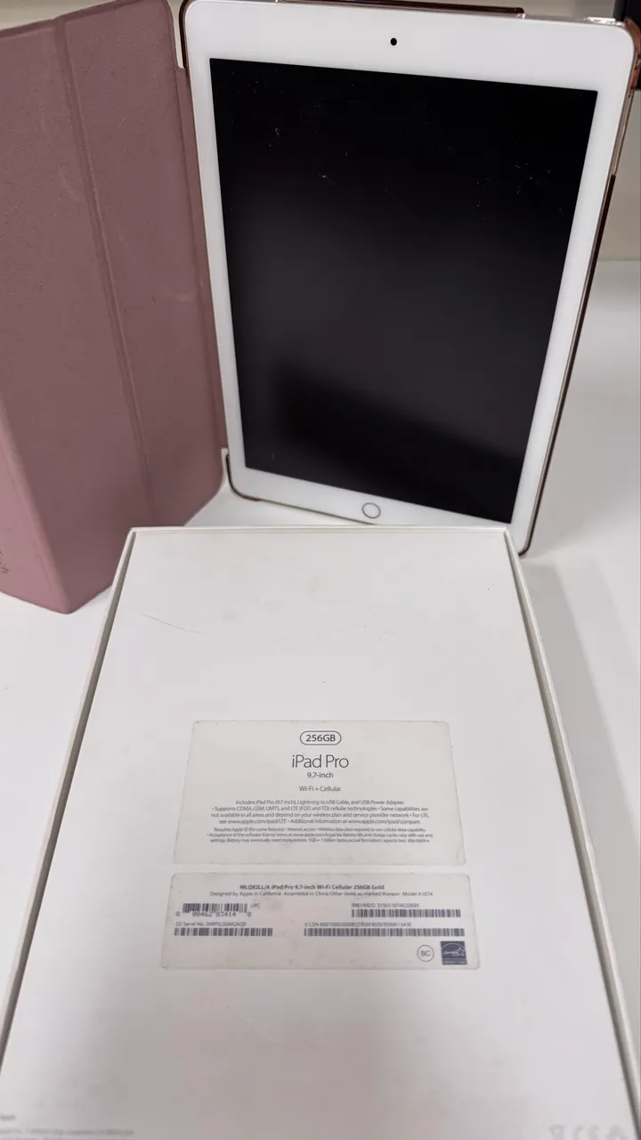 iPad Pro de 9,7 polegadas e 256GB. É o modelo com chip de celular e Wi-Fi , versão GOLD Acompanha caixa, carregador capa de proteção