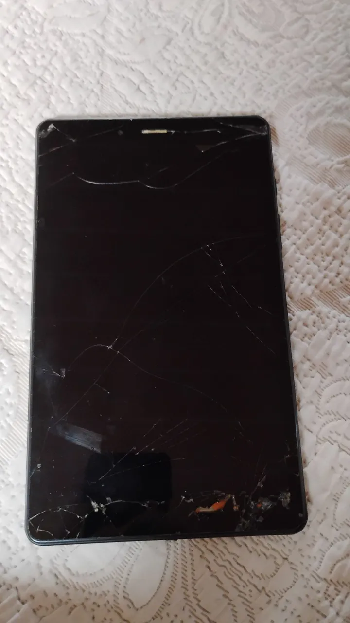 Tablet com display danificado, ideal para conserto ou aproveitamento de peças. Tela com rachaduras.