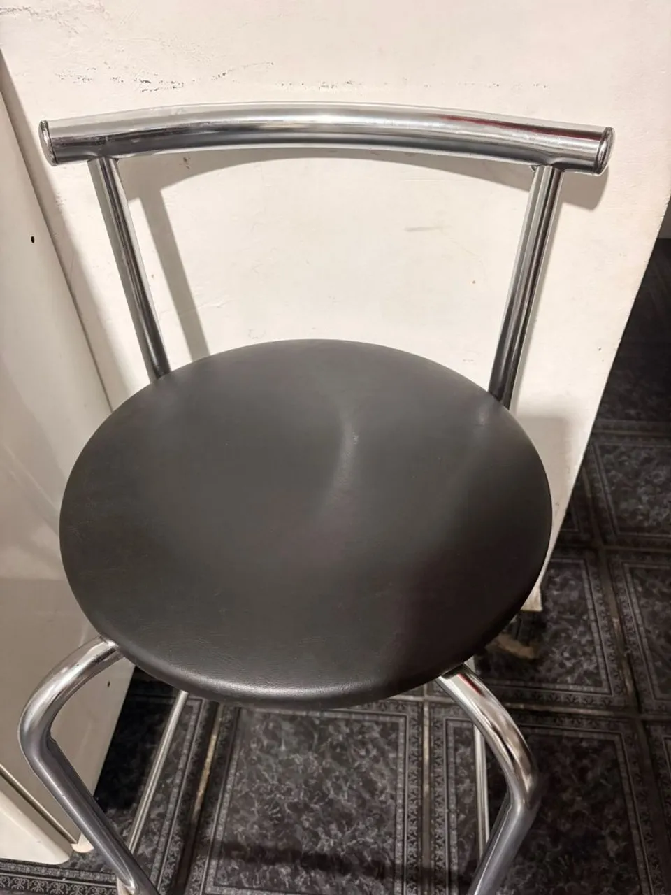 Cadeira de bancada com assento acolchoado.