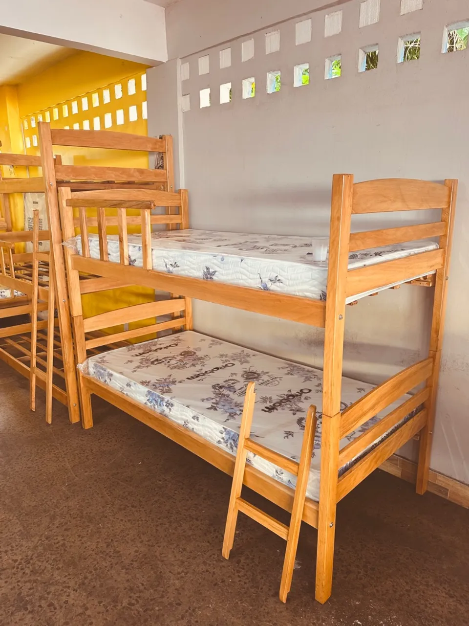 Beliche de madeira com colchões Ortobom, ideal para otimizar espaço e proporcionar conforto. Design clássico e funcional para quartos. Ligue