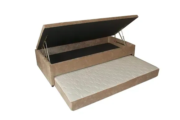 Cama box com baú integrado para organização e cama auxiliar, ideal para otimizar espaço e oferecer conforto. Perfeita para quartos compactos!