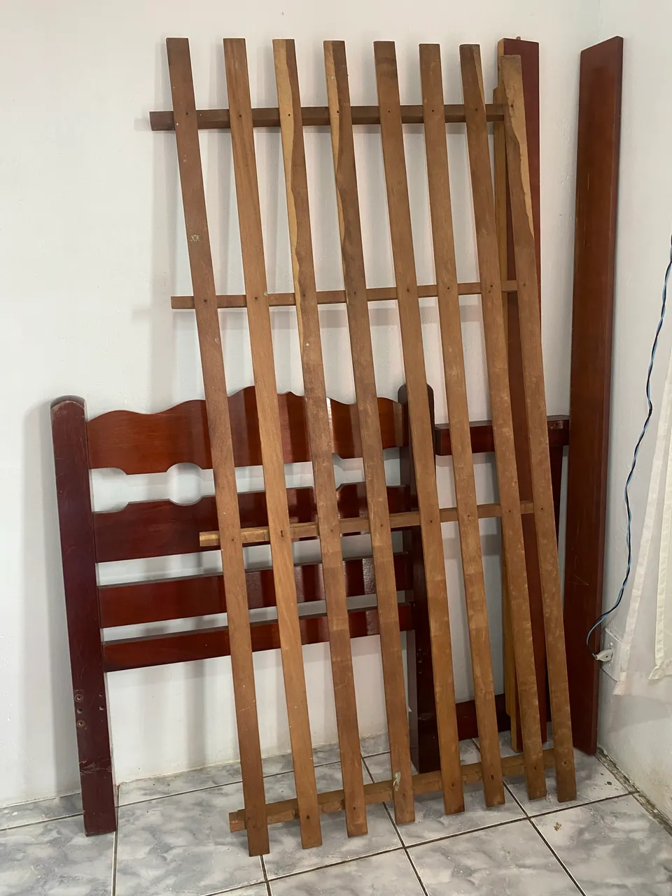 Cama de madeira, conservada para quem busca um móvel charmoso e durável. Design clássico que combina com diversos estilos de decoração. Comprei uma box de casal, só está ocupando espaço!