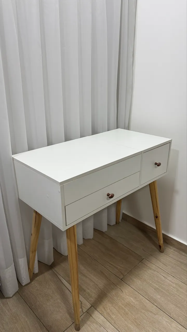 Linda escrivaninha branca com design moderno. Ideal para otimizar o espaço e adicionar elegância ao seu ambiente.