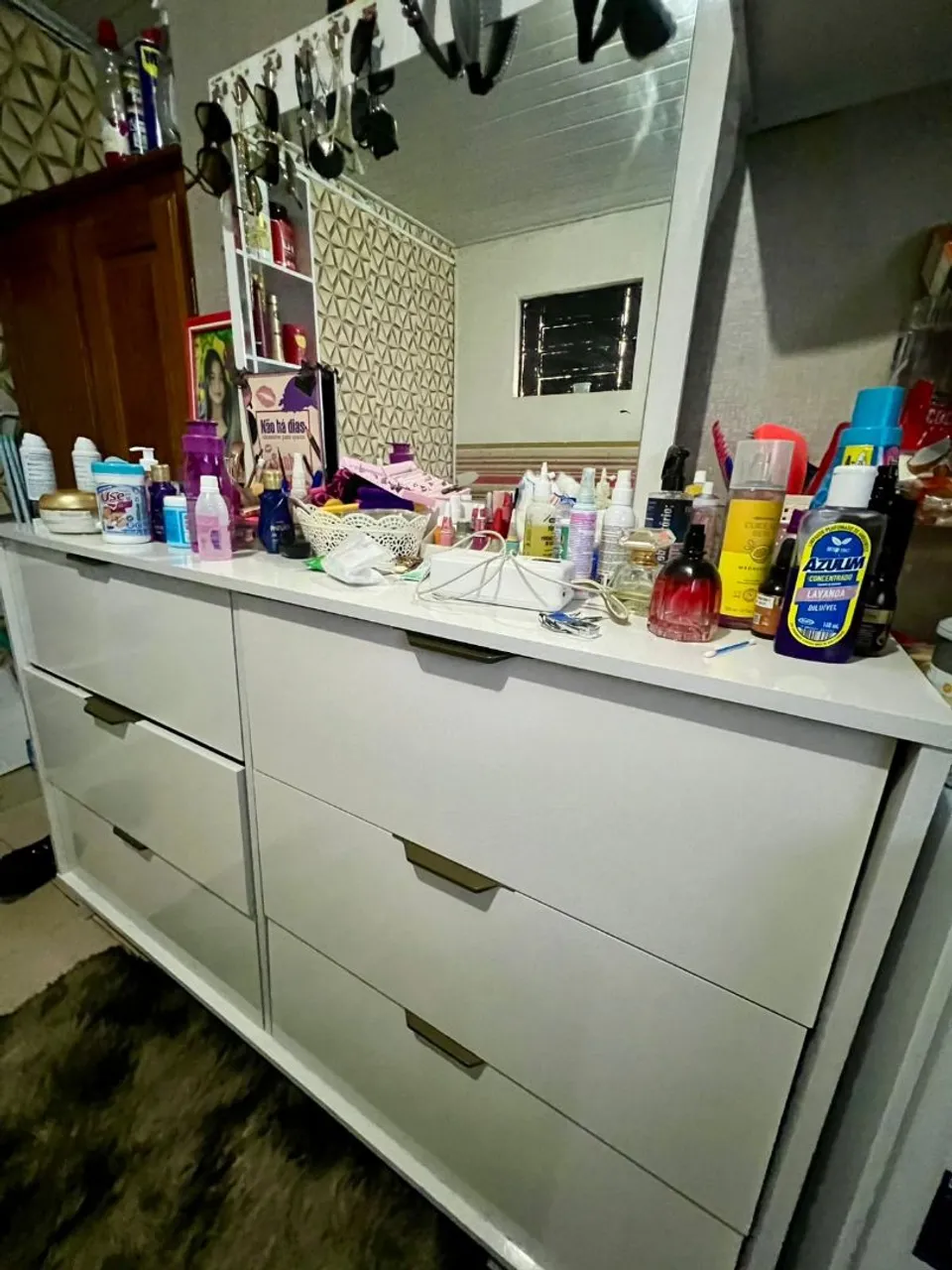 Linda penteadeira camarim com design moderno e funcional, perfeita para organizar seus cosméticos e itens de beleza. Ideal para quem busca praticidade e elegância no dia a dia.