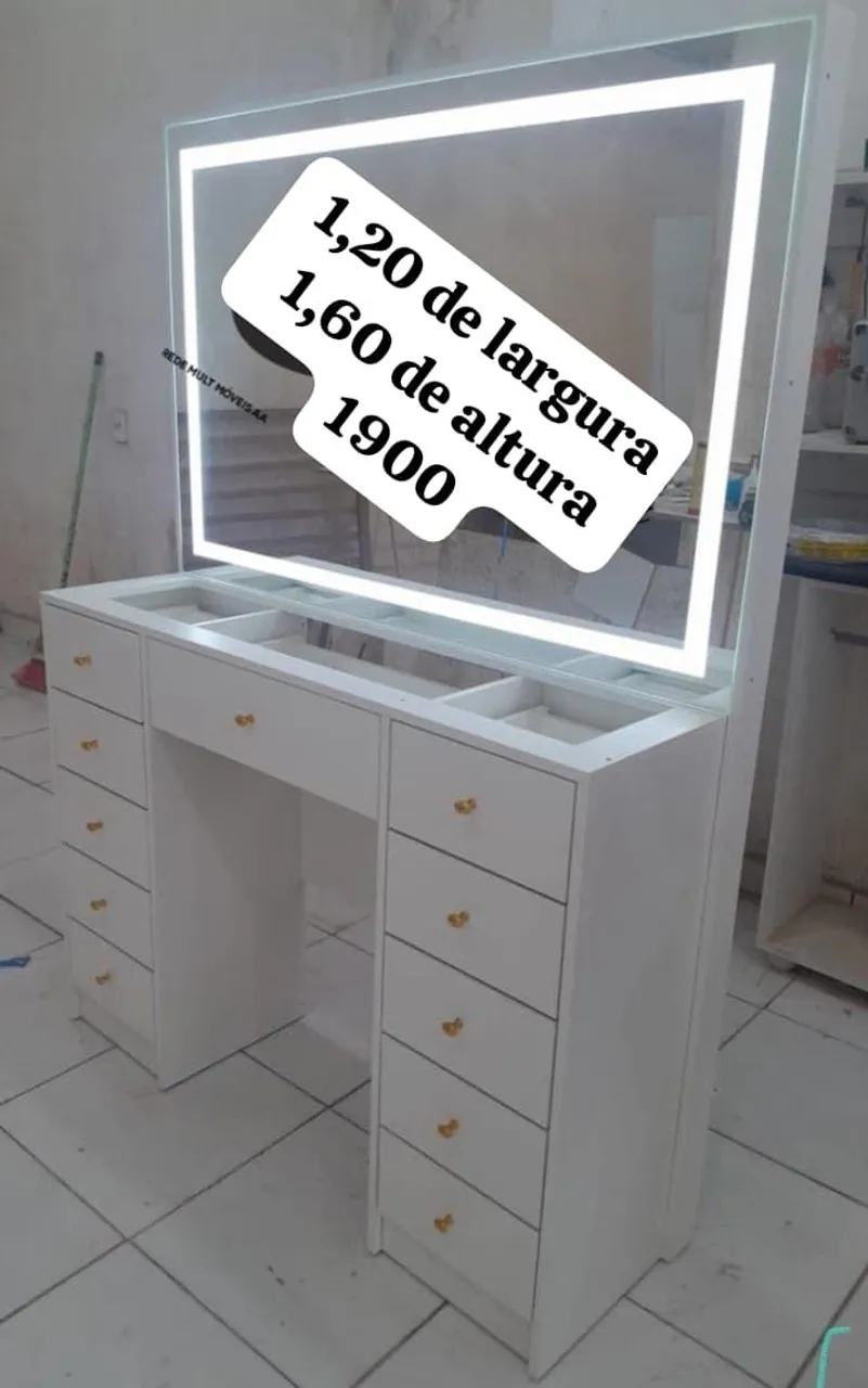 Charmoso camarim com iluminação de LED, perfeito para quem busca praticidade e elegância. Ideal para maquiagem e cuidados pessoais, este móvel combina funcionalidade e design moderno.