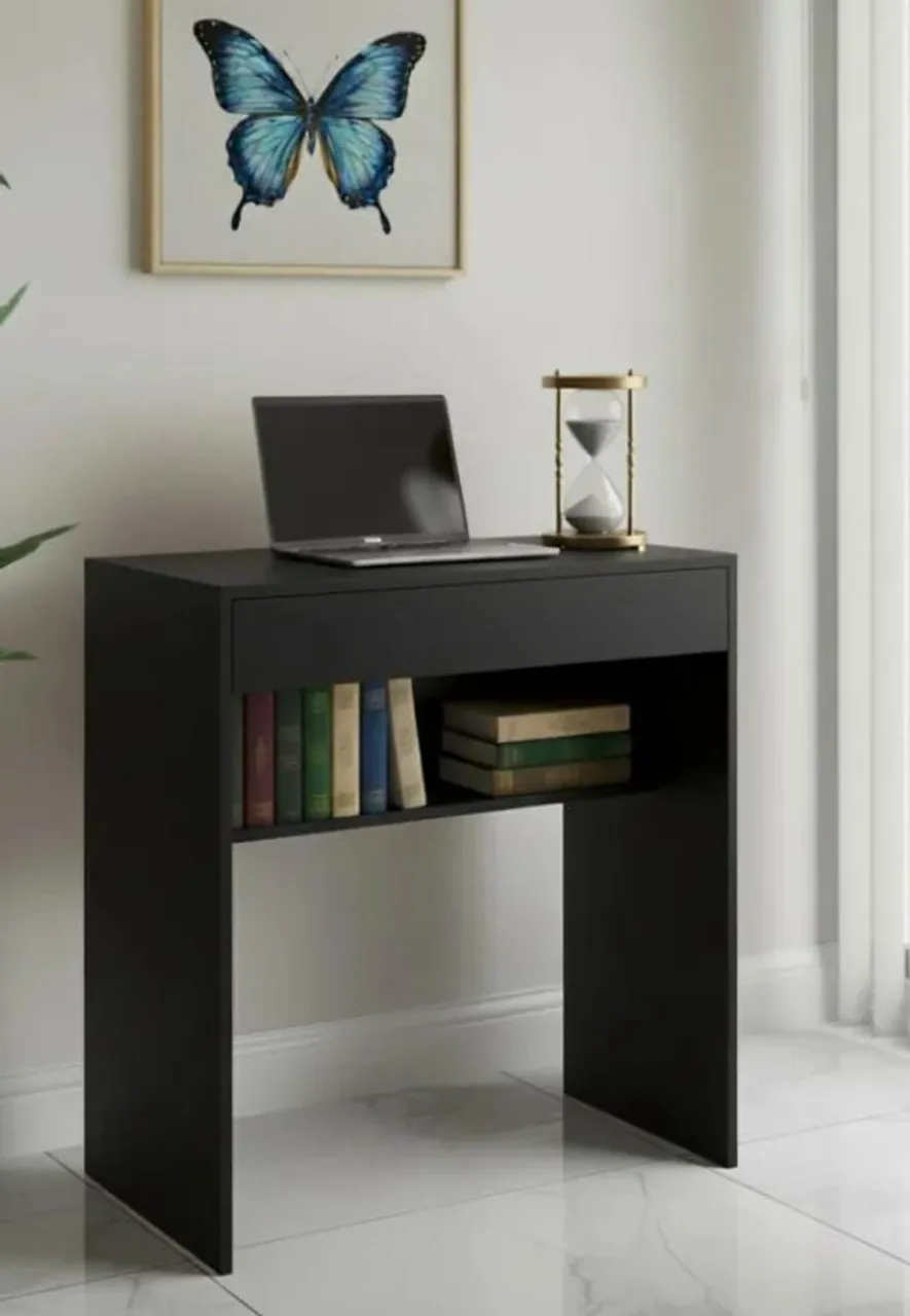 Apresentamos esta escrivaninha elegante e funcional, perfeita para otimizar seu espaço de trabalho. Com design moderno e cor preta, ela se adapta a qualquer ambiente. Ideal para estudos ou trabalho, oferecendo praticidade e estilo para o seu dia a dia.