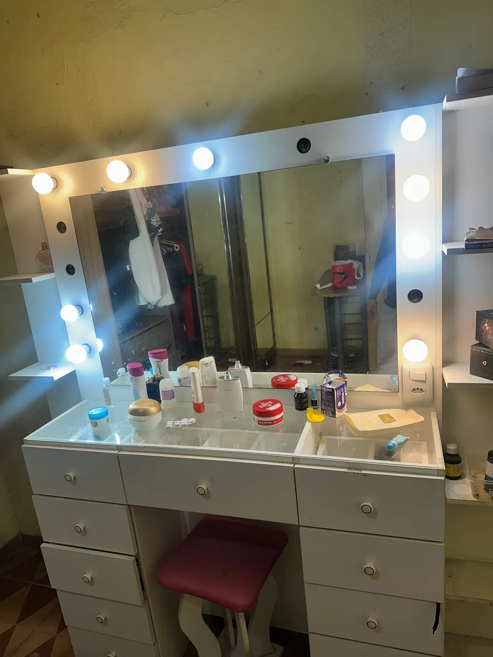 Linda penteadeira com design moderno e iluminação perfeita para sua rotina de beleza! Ideal para organizar seus cosméticos e criar um espaço charmoso. Perfeita para quem busca praticidade e elegância.