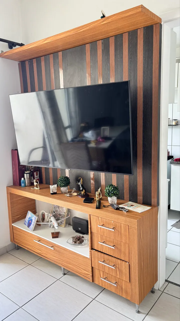 Transforme sua sala com este rack e painel elegante! Design moderno e funcional que combina beleza e praticidade, ideal para organizar e valorizar sua TV e seus objetos de decoração.