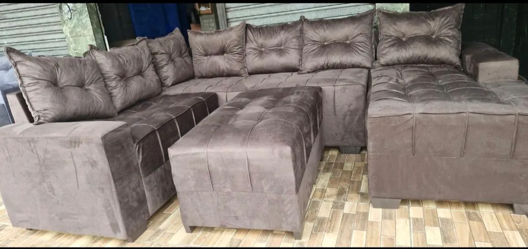 Sofá em formato de canto, com design moderno e elegante, ideal para otimizar o espaço da sua sala. Conforto e sofisticação em um só móvel! Whatsapp