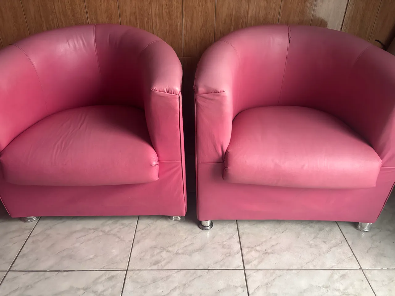 Conjunto de poltronas elegantes na cor rosa, perfeitas para adicionar um toque de charme e conforto ao seu espaço. Design moderno e acolhedor.
