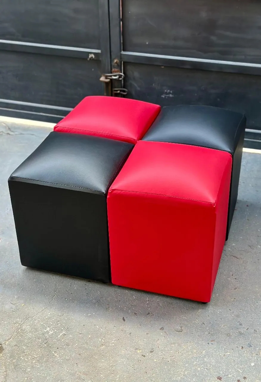 Puff Padrão 35x35cm de Qualidade, design moderno e versátil, perfeito para diversos ambientes. Cores vibrantes em preto e vermelho.