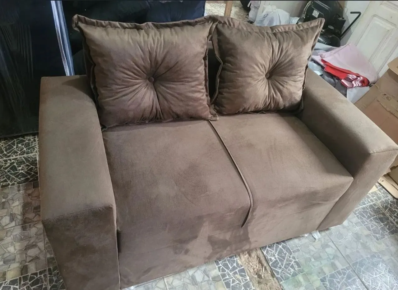 Sofá 2 lugares com almofadas Acompanha 1 puff de brinde E ainda com entrega grátis Temos a pronta entrega Super acolchoado Não trabalhamos com sofá duro e de ma qualidade.