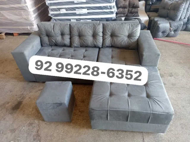 Sofá cores , cinza bege e preto puff de brinde Entrega e montagem gratis