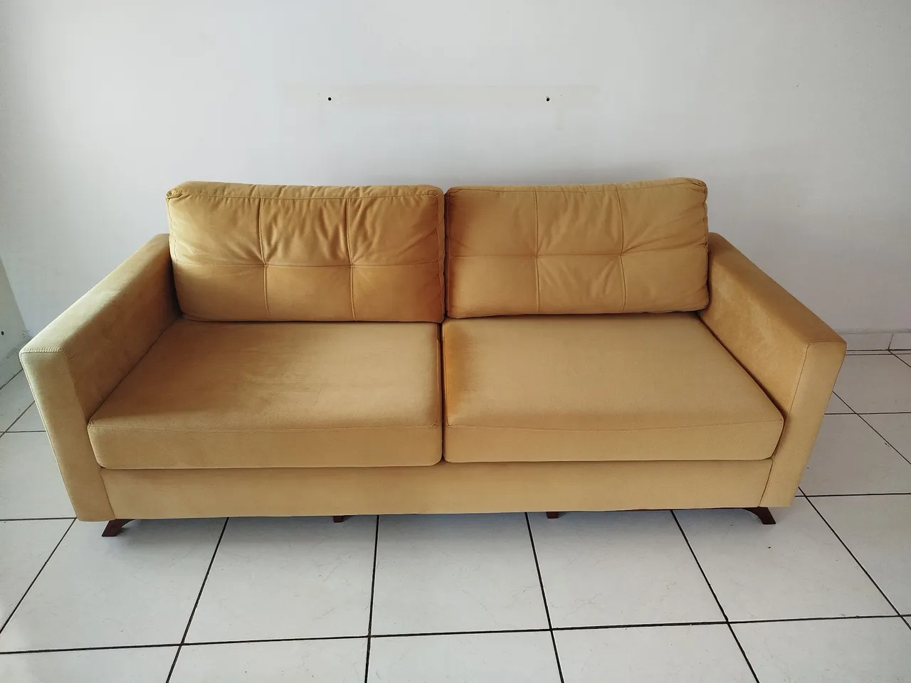 Sofá de veludo luxuoso e elegante. Design clássico. Produto de alta qualidade da Euromanaus. As capas das almofadas e do assento são removíveis para lavagem. O sofá foi bem conservado e não apresenta marcas ou danos. A base de madeira é removível. O comprador deverá providenciar o transporte.