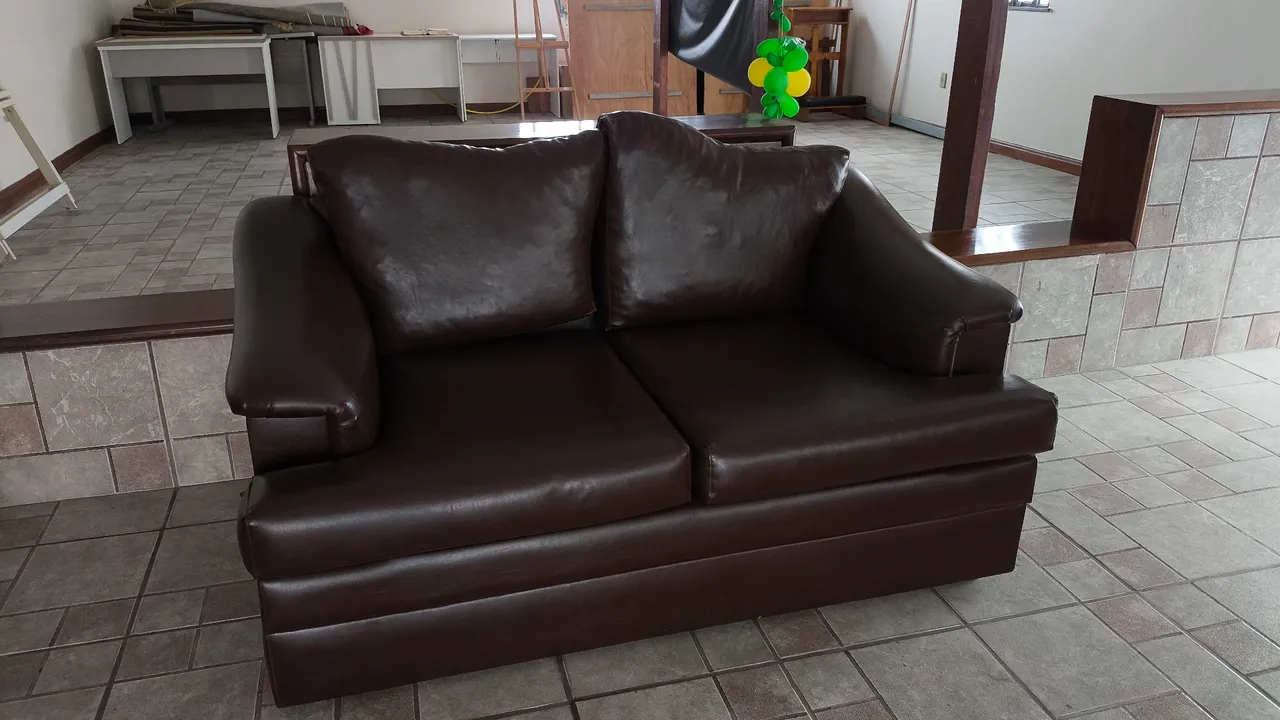 Sofá de couro elegante e confortável, ideal para relaxar e decorar sua sala. Design moderno e sofisticado para um ambiente agradável. - o sofá está em perfeito estado nunca usado! - 2 lugares - cor, Marrom NÃO FAZEMOS ENTREGA! ACEITAMOS CARTÃO