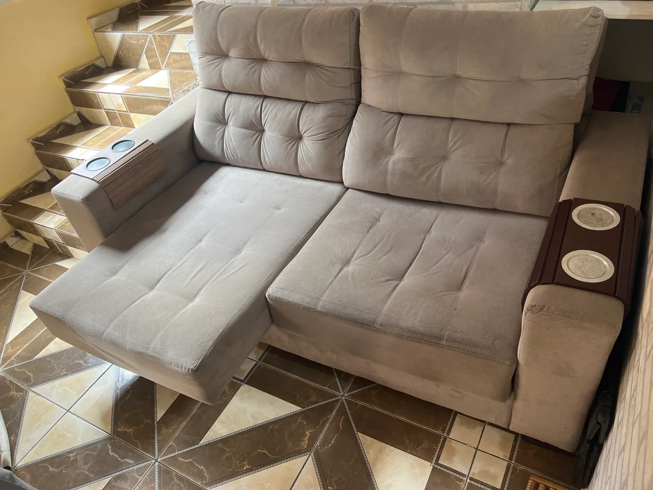 Sofá usado de dois lugares e confortável! Sinais de uso.
