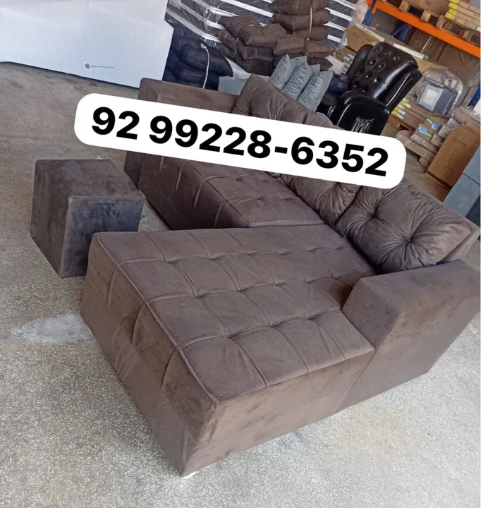 Sofá marrom, novo, com design moderno e confortável. Ideal para sala de estar ou home theater. Possui assentos macios e encosto alto para garantir o máximo conforto. A estrutura modular permite diversas configurações, adaptando-se ao seu espaço.