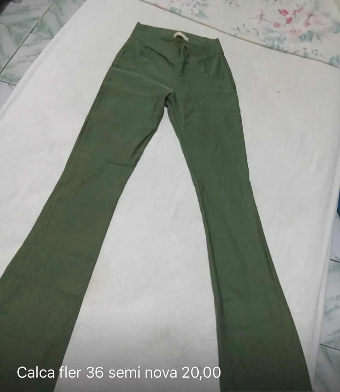 Calça feminina flare na cor verde, um clássico que nunca sai de moda! Conforto e estilo em uma única peça, perfeita para diversas ocasiões.