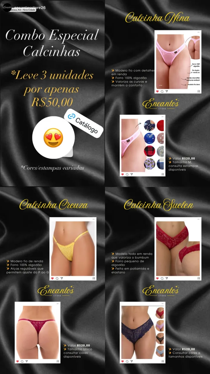 Combo especial de calcinhas com cores e estampas variadas. Leve 3 unidades por apenas R$50,00.