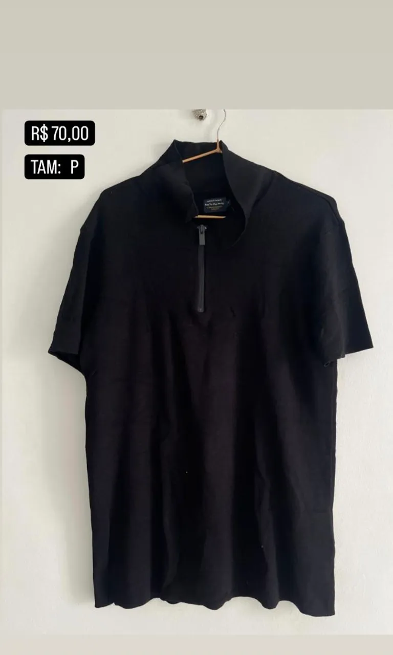 Camisa preta com detalhe em zíper na gola. Perfeita para um visual moderno e confortável tamanho P e M R$ 70,00 sem entrega contato 9916... ver número Educandos