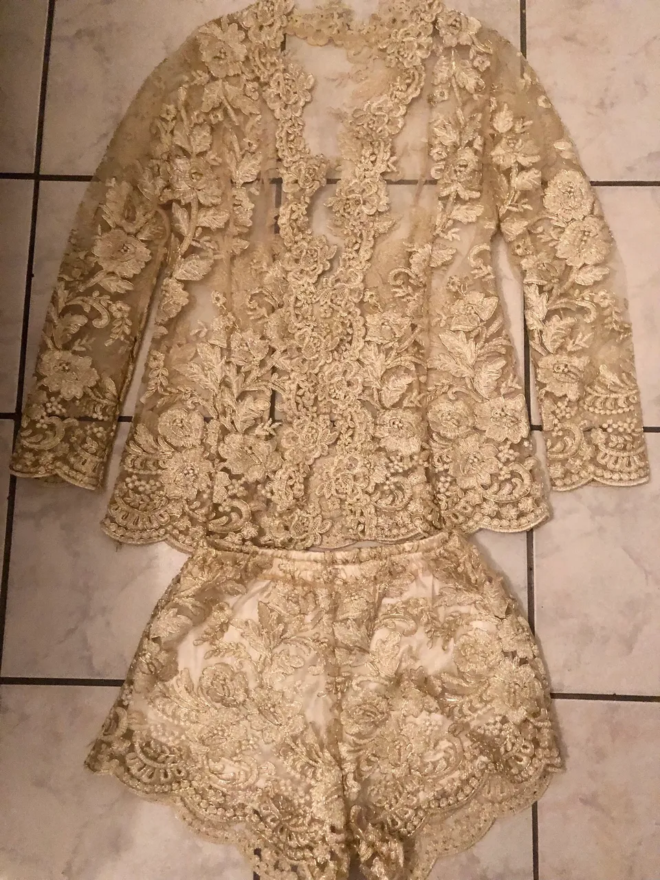 Conjunto de roupa delicado e elegante, perfeito para ocasiões especiais. Detalhes em renda que adicionam um toque de sofisticação ao seu visual.