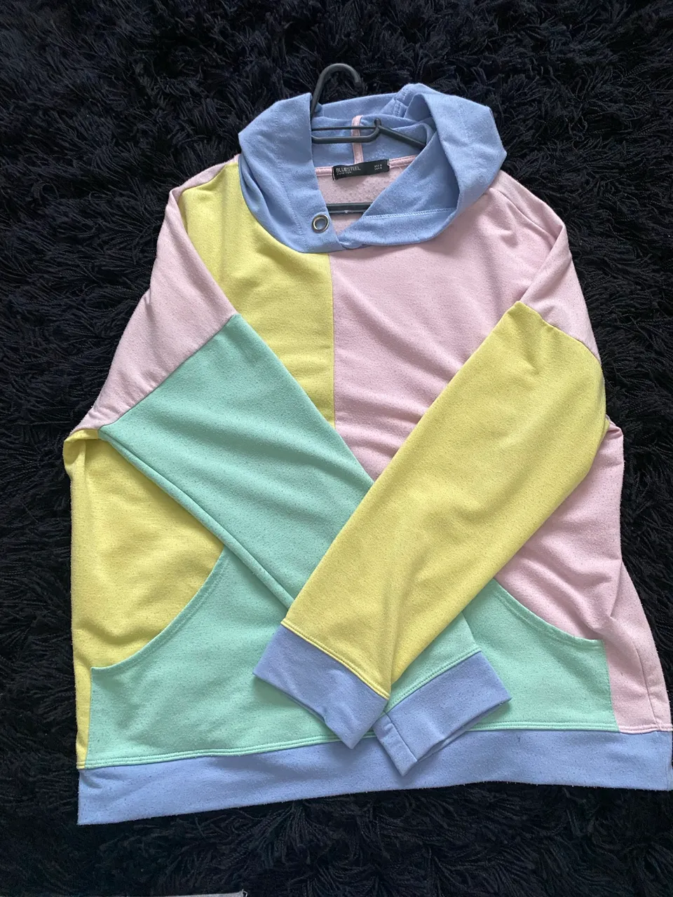 Lindo moletom colorido, perfeito para um visual estiloso e confortável. Com design moderno e cores vibrantes, ideal para diversas ocasiões.