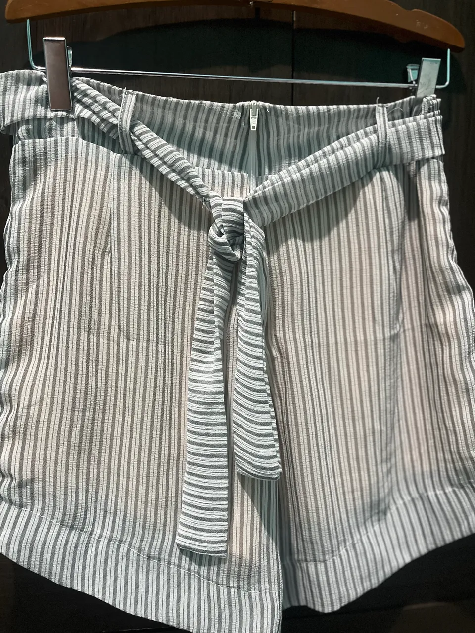 Shorts com listras e cinto, perfeito para um look moderno e confortável! Possui duas avarias, como mostra nas duas últimas fotos.