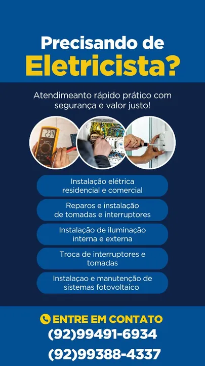 Elétrica residencial e comercial Agende seu horário para fazer seu orçamento,garantimos um serviço com total segurança e qualidade.