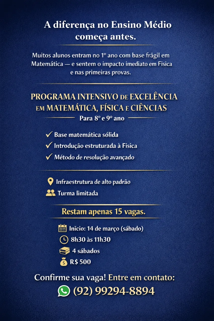 Muitos alunos chegam ao 1º ano com dificuldades em Matemática e acabam sentindo o impacto em Física e nas primeiras provas. A diferença começa antes ? e é exatamente essa a proposta do nosso Programa Intensivo de Excelência.